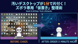 デスクトップが汚いとお悩みの方へ。アイコンだらけの画面は仕事効率を下げます。本記事では、ズボラな性格でも維持できる「仮置きフォルダ」を使った簡単な整理術を紹介。今すぐ実践して、美しい壁紙を取り戻しましょう!