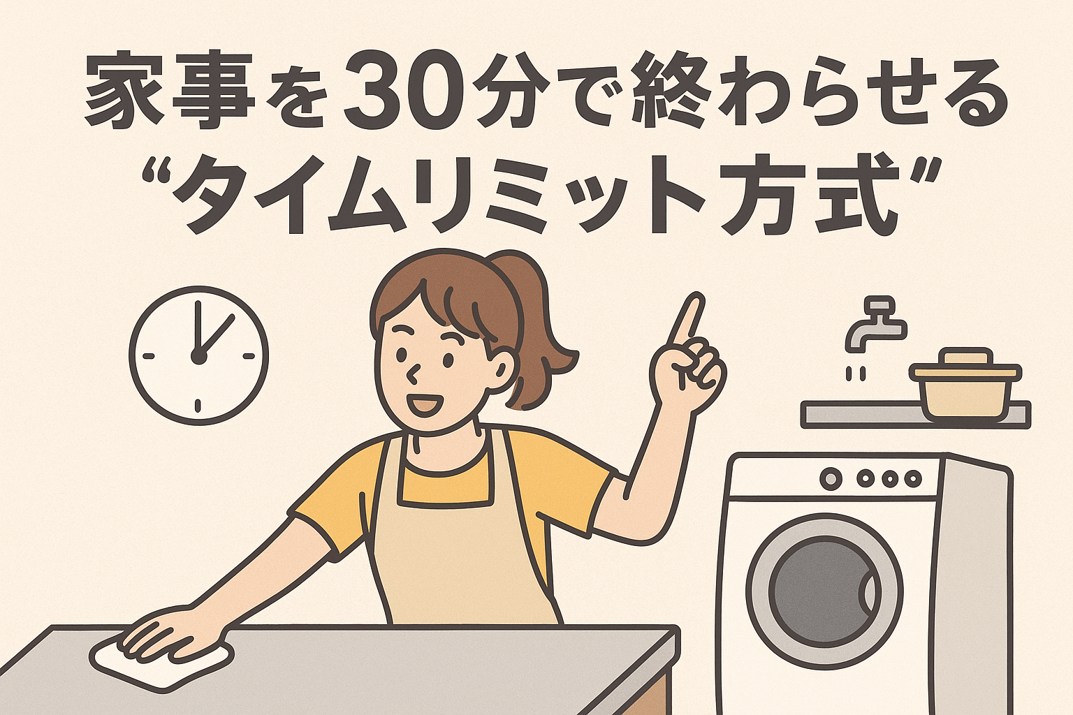 時間術 家事を30分で終わらせる“タイムリミット方式” 「家事を30分で終わらせる“タイムリミット方式”」を実践するための具体的な方法とコツを紹介します。忙しい日常を効率的に乗り切るためのヒントが満載です。 2025.09.26 時間術