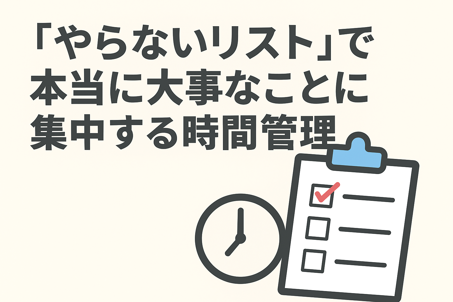 時間術 「やらないリスト」で本当に大事なことに集中する時間管理術 無駄なタスクを削ぎ落とし、集中力と生産性を高める「やらないリスト」の作り方を実例とともに丁寧に解説。まずは今日、3つを決めて時間を取り戻そう。 2025.09.22 時間術