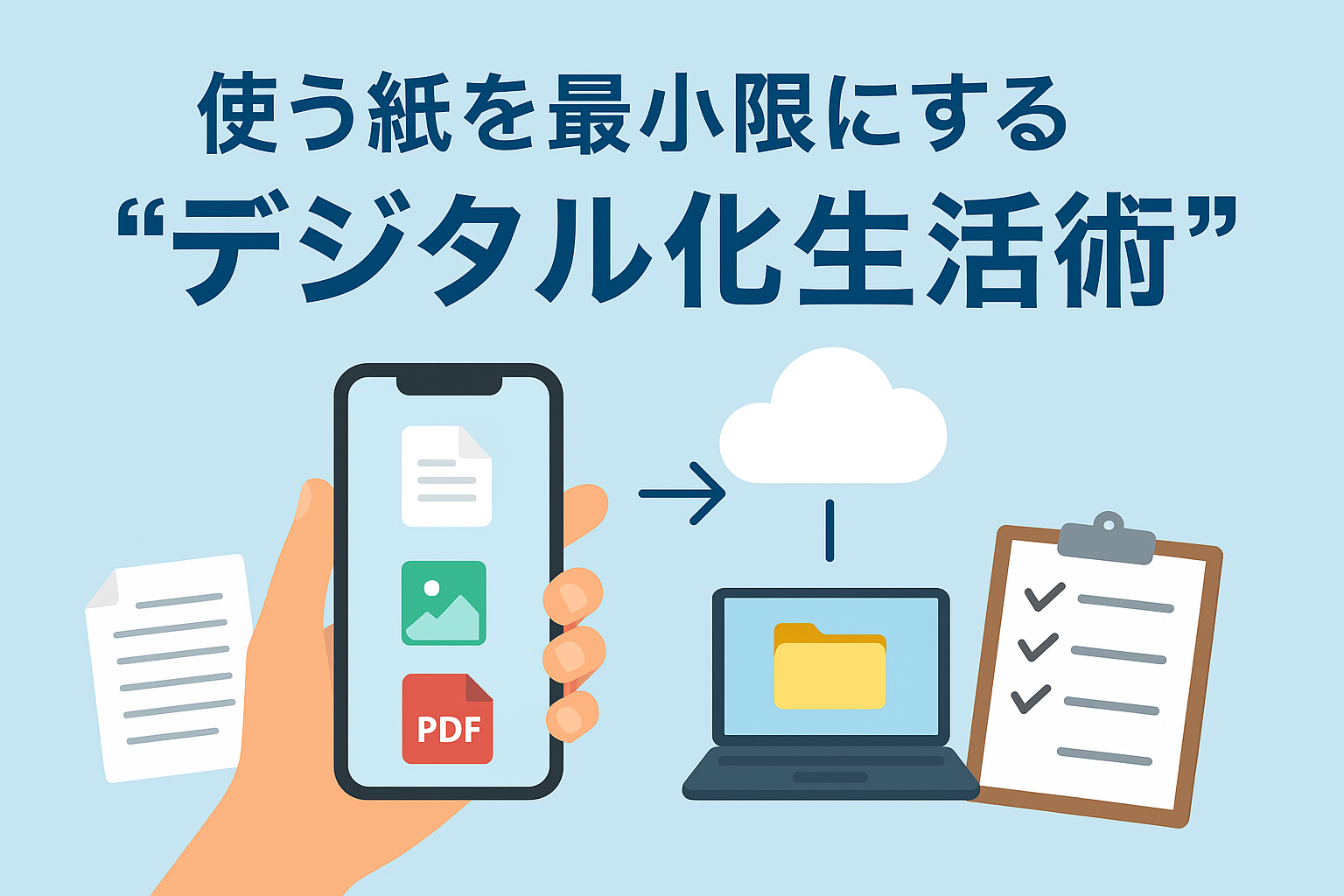 Uncategorized 使う紙を最小限にする“デジタル化生活術” 紙を使わない暮らしを実践するデジタル化生活術。家計簿・領収書・契約書・メモをスマホ/クラウドで管理して紙を最小限にする方法を解説。 2025.10.09 Uncategorized生活ハック